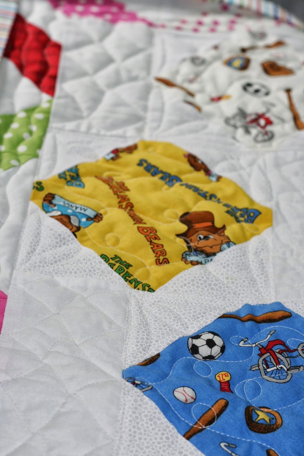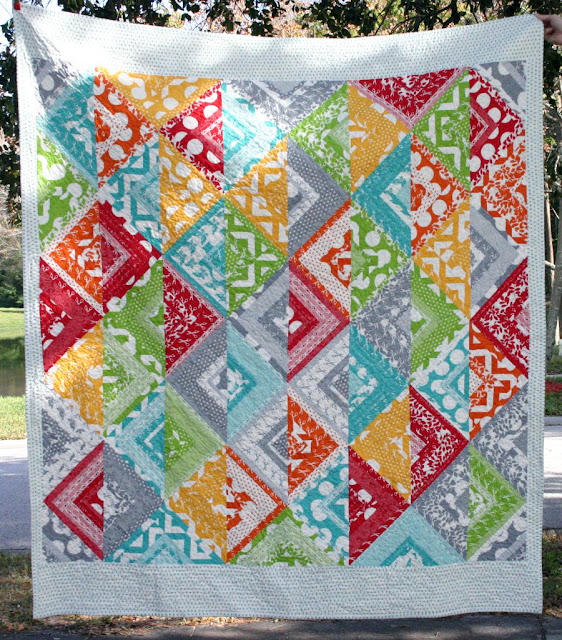These types of designs have been inspiring me a lot lately. They are the reason I have been doing more quilting. They are fun; bright; bold; and a simple change of fabric selection can change the look drastically.